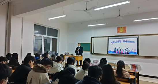 学业方面做到敏而好学,比肩争先,在新学期抓住重点、努力学习的同时多参加体育锻炼,提升身体素质。胡老师还着重强调了宿舍消防安全、人身财产安全以及外出请假制度等事项。