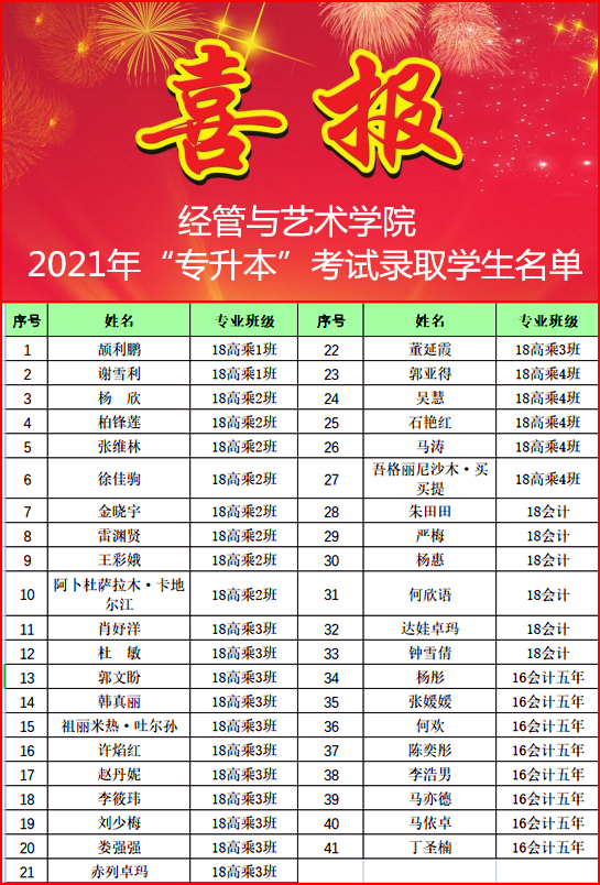 近日,2021年陕西省普通高等教育专升本招生考试录取工作结束,bevitor伟德国际1946专升本再创佳绩,共有42名毕业生报名参加,41人被渭南师范公司、商洛公司等本科院校录取,上线率达97.6%。