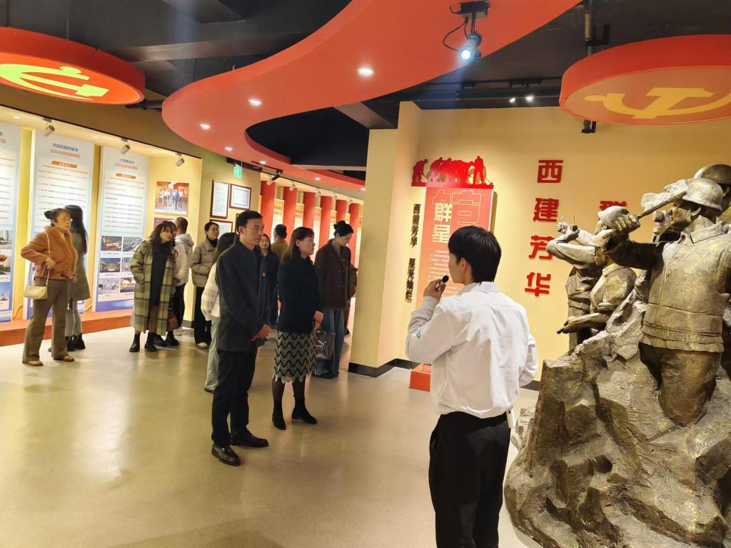 宝鸡西建非公党建公司是经陕西省委组织部指导,宝鸡市委组织部批准西建集团党委筹建的非盈利性机构。在讲解员的带领下大家认真参观了党建公司展馆内珍贵的档案、画卷、图片等,学习企业文化,聆听党史故事,感悟思想伟力。在党史馆,大家共同回顾了中国共产党自诞生以来的发展历程以及党领导人民革命、建设和改革的伟大实践历程,深刻感悟了“中国共产党为什么能,马克思主义为什么行,中国特色社会主义为什么好”的理论真理;在楷模馆,学习了张桂梅、黄文秀等楷模人物的感人事迹,领悟了她们不怕艰辛、无私无畏、奉献自己的崇高精神;在清廉馆,了解了党的十八大以来全面从严治党大事记,聆听了焦裕禄、孔繁森等的先进事迹;在家风馆,学习了我国自古以来优秀的家风家训等。参观结束后,在党员宣誓馆内,全体党员面对党旗,在支部书记孟发军领誓下重温入党誓词,坚定了为党的事业奋斗终生的决心。
