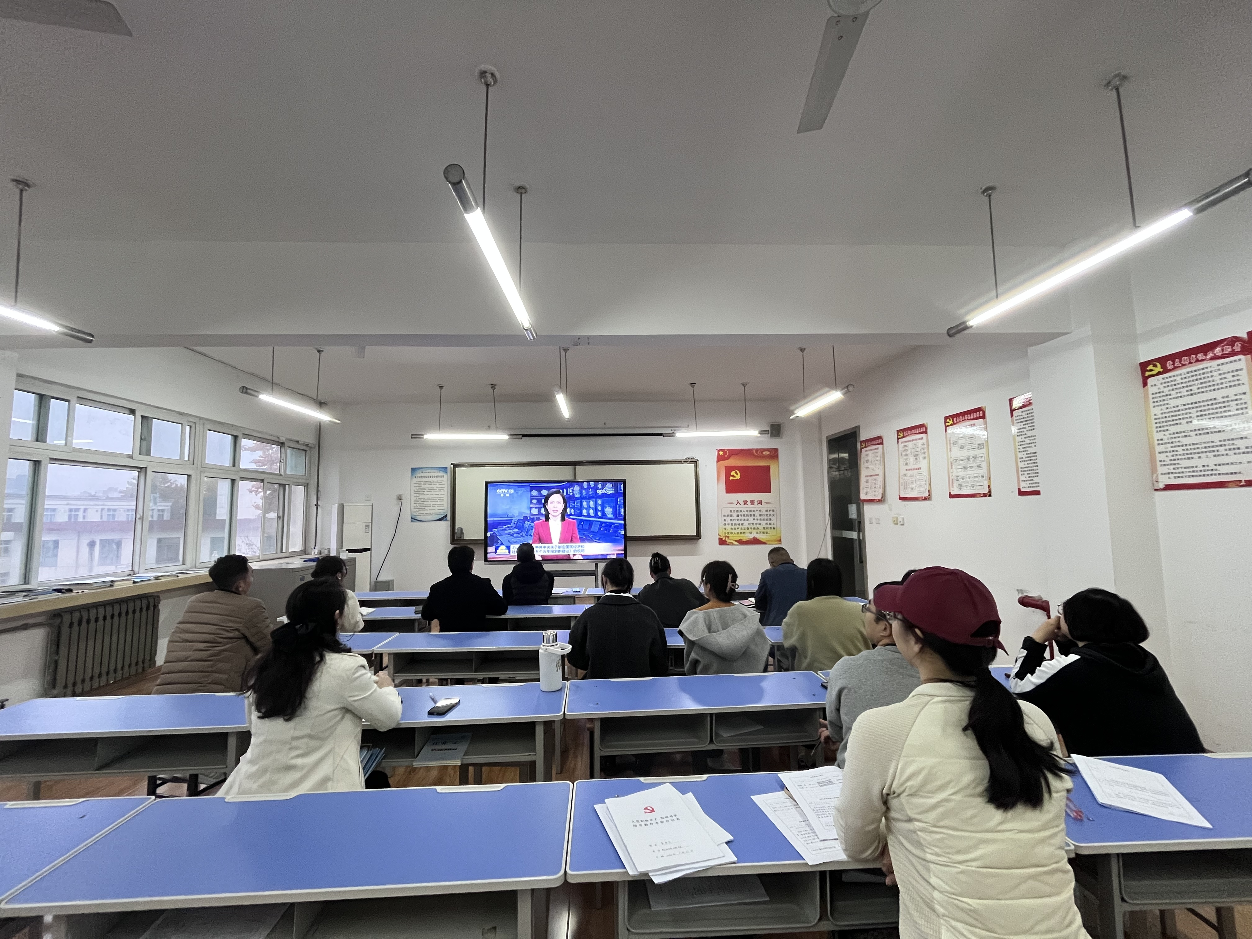 随后,全体党员集中观看了习近平关于《中共中央关于制定国民经济和社会发展第十五个五年规划的建议》的说明新闻联播节选视频。
