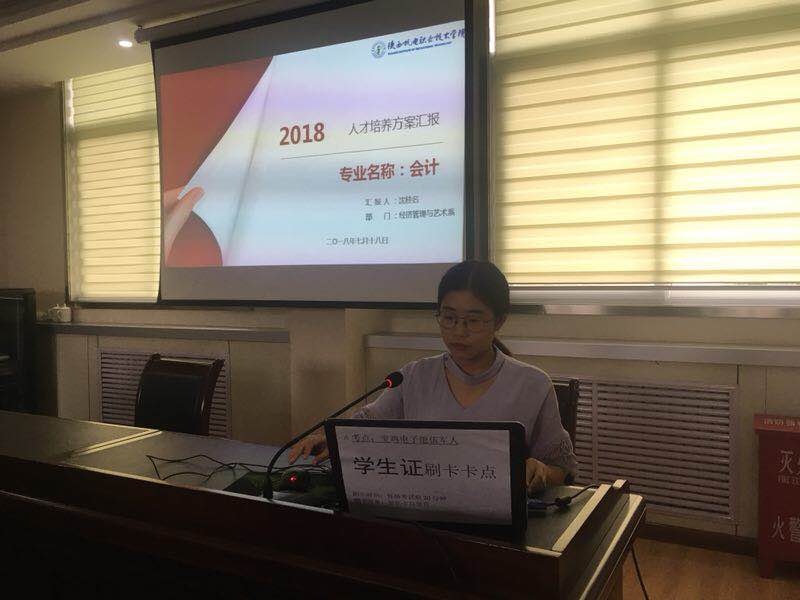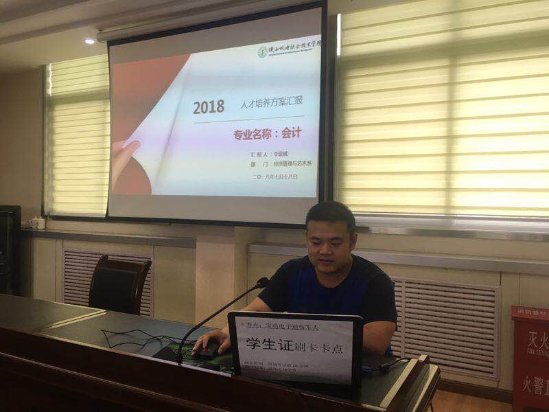 2018年7月18日,经济管理与艺术系的沈桂名、李豪斌、姚颖骏、严立琼参加了公司举办的《2018年人才培养方案》汇报和评审会议,分别进行了《会计》(三年)、《会计》(五年)、《高速铁路客运乘务》(三年)、《高速铁路客运乘务》(五年)的人才培养方案汇报,经过各位老师的辛勤工作,顺利完成了汇报工作。