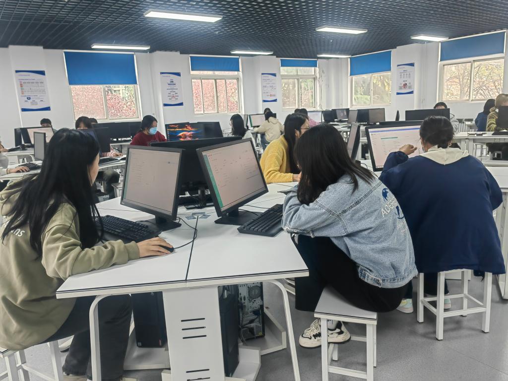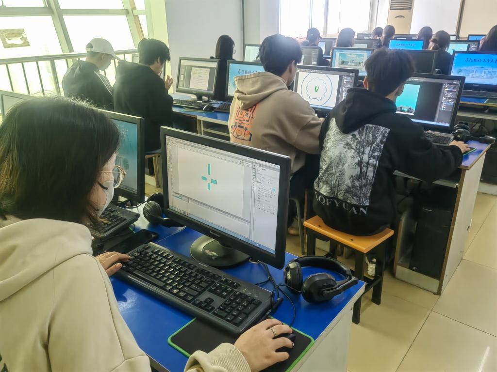 在视觉艺术设计赛场,同学们正在根据主题设计标志,从确定主题海报,到策划脚本,再到动画创作一气呵成。