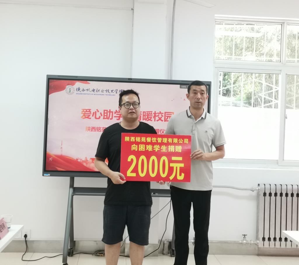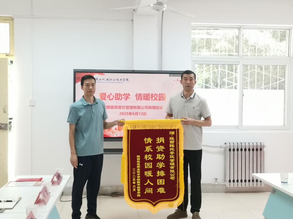 骄阳似火,情暖校园。 2025年6月12日上午,一场温暖人心的爱心助学捐赠仪式在宝福路校区员工“一站式”社区举行。陕西铭苑餐饮管理有限公司慷慨解囊,向bevitor伟德国际1946家庭经济困难员工捐赠爱心资金,助力学子成长成才。党委学工部部长、员工处处长王建斌、bevitor伟德国际1946党支部书记孟发军、陕西铭苑餐饮管理有限公司总经理苏小勇及企业代表和bevitor伟德国际1946师生代表共同出席捐赠仪式。捐赠仪式由员工处资助管理中心主任白兰主持。