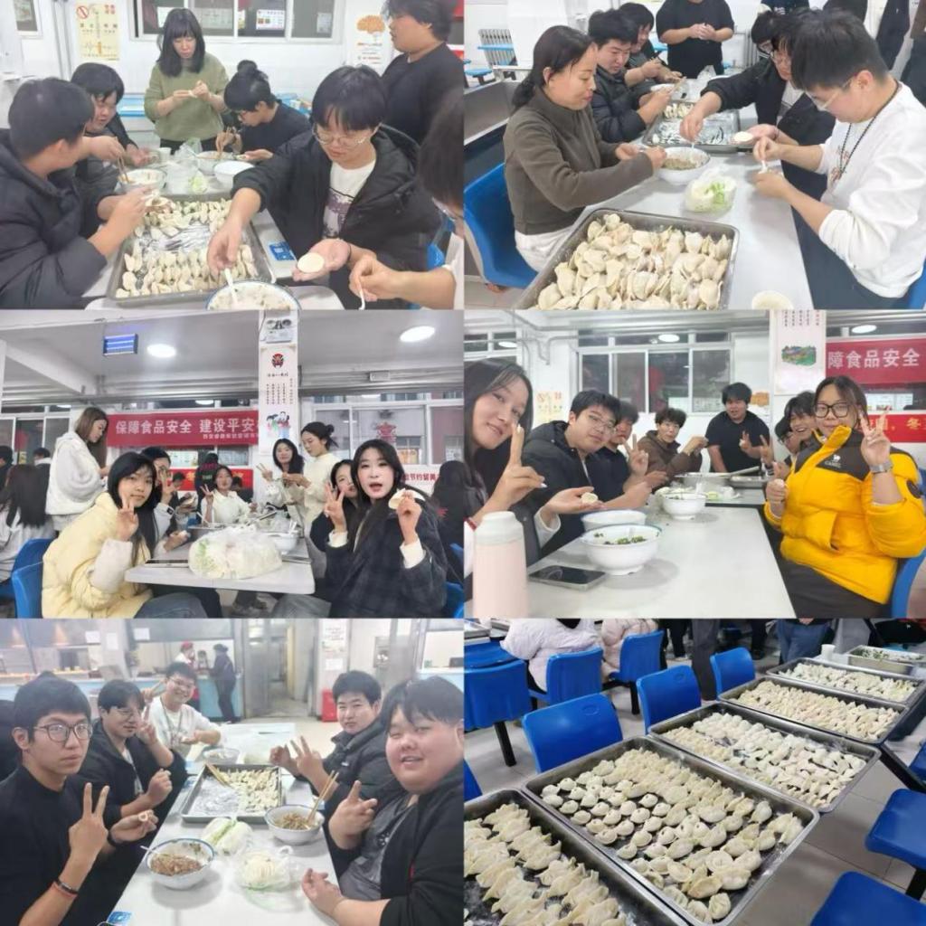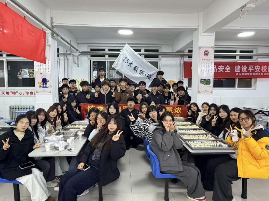 恰逢中华民族传统节日——冬至,25大数据3班别出心裁,班主任带领全班同学在宝福路校区南餐厅开展包饺子活动,以实践体验的方式庆祝佳节。活动现场,同学们分工协作、热情高涨,揉面、擀皮、包饺子有条不紊。大家发挥创意,包出的饺子形态各异,有的饱满圆润似金元宝,有的精巧别致像小月牙。当热气腾腾的饺子端上桌,同学们品尝着自己亲手制作的美食,脸上洋溢着幸福的笑容,现场其乐融融,处处洋溢着温馨融洽的节日氛围。