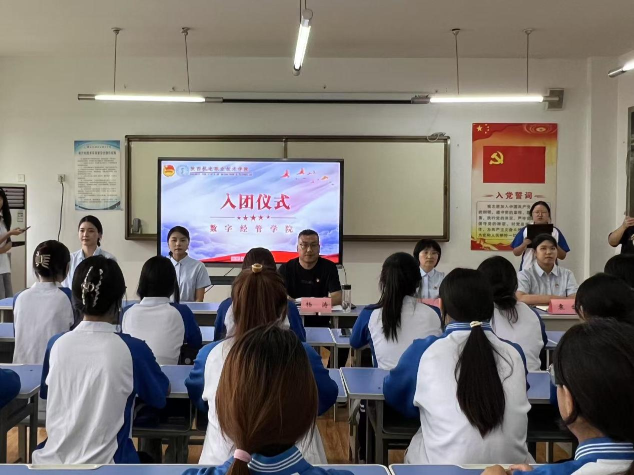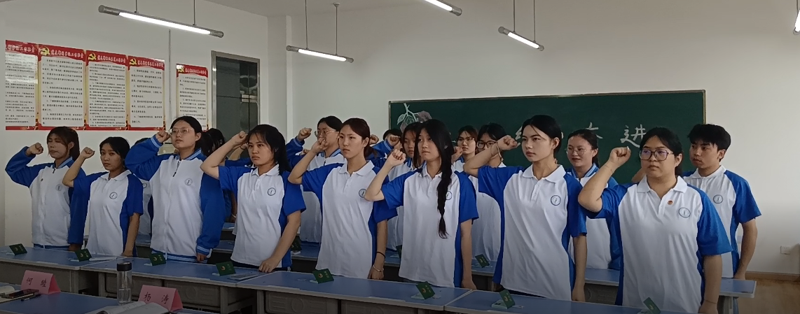 团总支书记杨涛老师向新团员表示祝贺,并寄语青年:“希望同学们以入团为起点,牢记‘请党放心,强国有我’的青春誓言,在学习和生活中发挥模范作用,做有理想、敢担当、能吃苦、肯奋斗的新时代好青年。”最后,全场齐唱团歌,仪式在热烈的氛围中圆满结束。