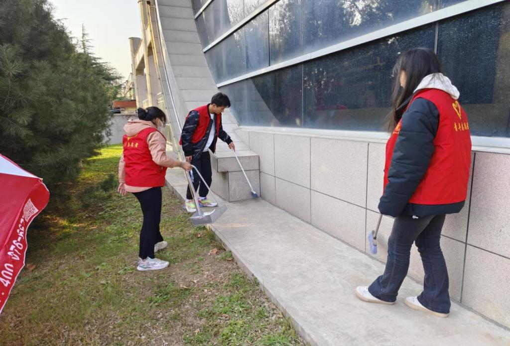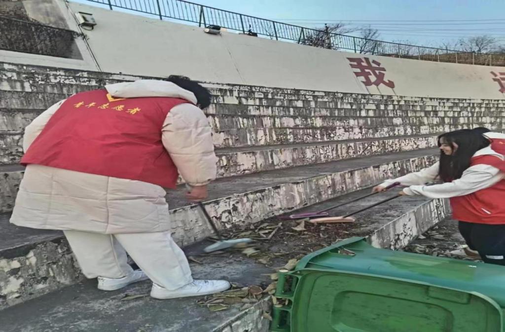 40余名志愿者在辅导员何睦、杨涛、赵家瑶老师的带领下,分别对宝福路校区大门口、羽乒馆、操场主席台、各处宣传栏等进行了清扫净化。劳动过程中,志愿者们发扬了不怕苦、不怕累、不怕脏的志愿服务精神,对各处卫生死角的垃圾、杂物进行了彻底清理,对宣传栏进行了清洁。
