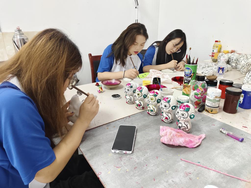 第一站,我们来到了凤翔泥塑艺博园,参观了中国非物质文化遗产“凤翔泥塑”国家级传承人、工艺美术大师、享受国务院特殊津贴艺术家、凤翔泥塑第六代薪火传承人、宝鸡市民间文艺家协会主席、泥塑大师胡新明先生所创作的各式各样、色彩鲜明的泥塑工艺品,听取了胡新明夫人敬萍老师对于凤翔泥塑的讲解,并且亲身体验了泥塑从毛稿制模、翻坯、粘合成型、精抛、彩绘、勾线、装色等制作过程,看见经过数道工序后,从泥土变成精妙绝伦的泥塑工艺品,在场的每位师生都赞不绝口。