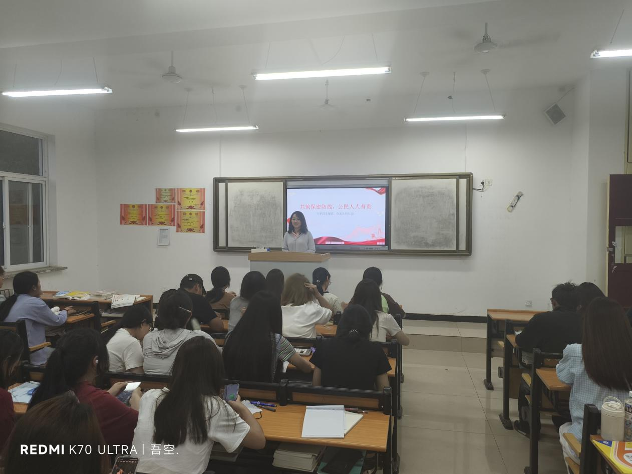 班会上,各班班主任带领同学们认真学习了《中华人民共和国保守国家秘密法》,并结合实际案例,详细讲解了保密工作的重要性和公民应尽的义务。同学们还集体观看了保密教育主题宣传片和保密档案系列微纪录片《传承:红色保密印记》,通过生动的影像资料,深刻感受到保密工作的历史传承和现实意义。