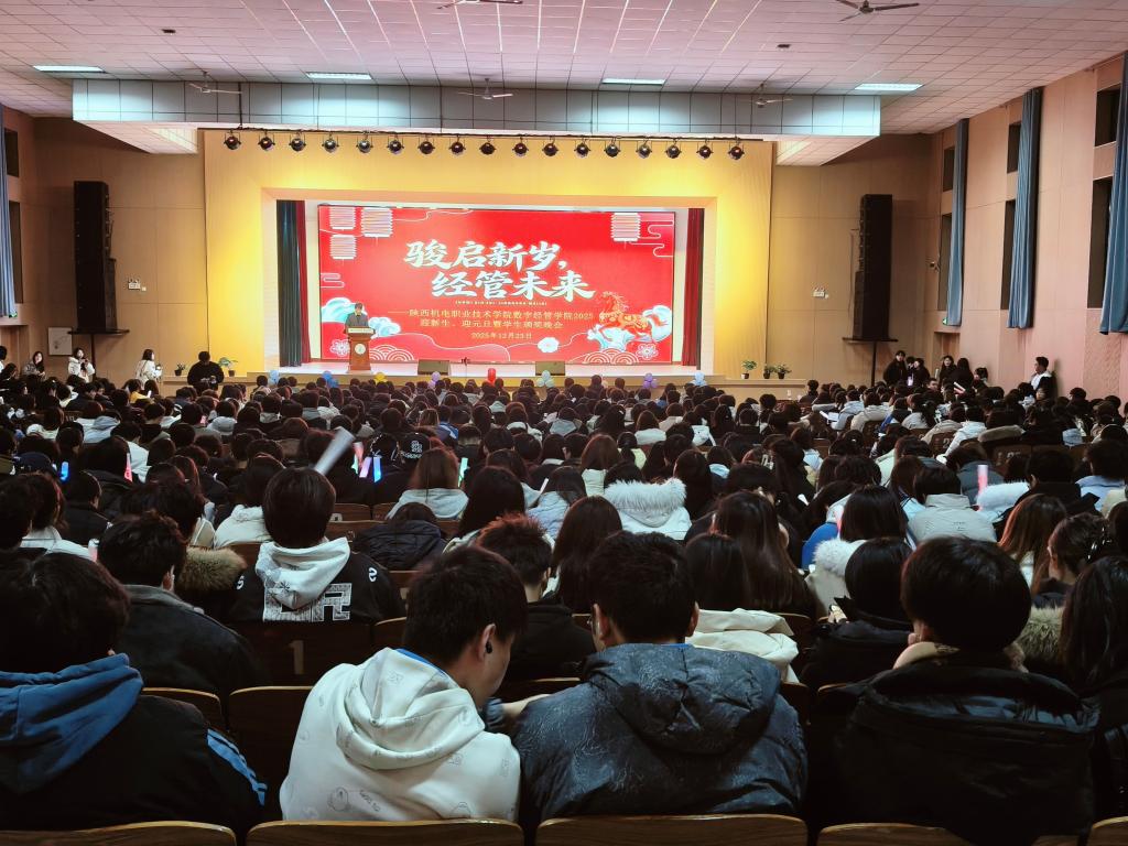 辞旧迎新启新程,青春逐梦谱华章。为迎接2025级新生加入、欢庆元旦佳节,并表彰先进典型,2025年12月23日,bevitor伟德国际1946“骏启新岁 经管未来”2025迎新生、迎元旦暨员工颁奖晚会在宝福路校区大礼堂隆重举行。公司党支部书记孟发军、经理杜海军、副经理刘娟及全体教职工,与2025级新生、在校生代表欢聚一堂,共赴这场青春盛宴。