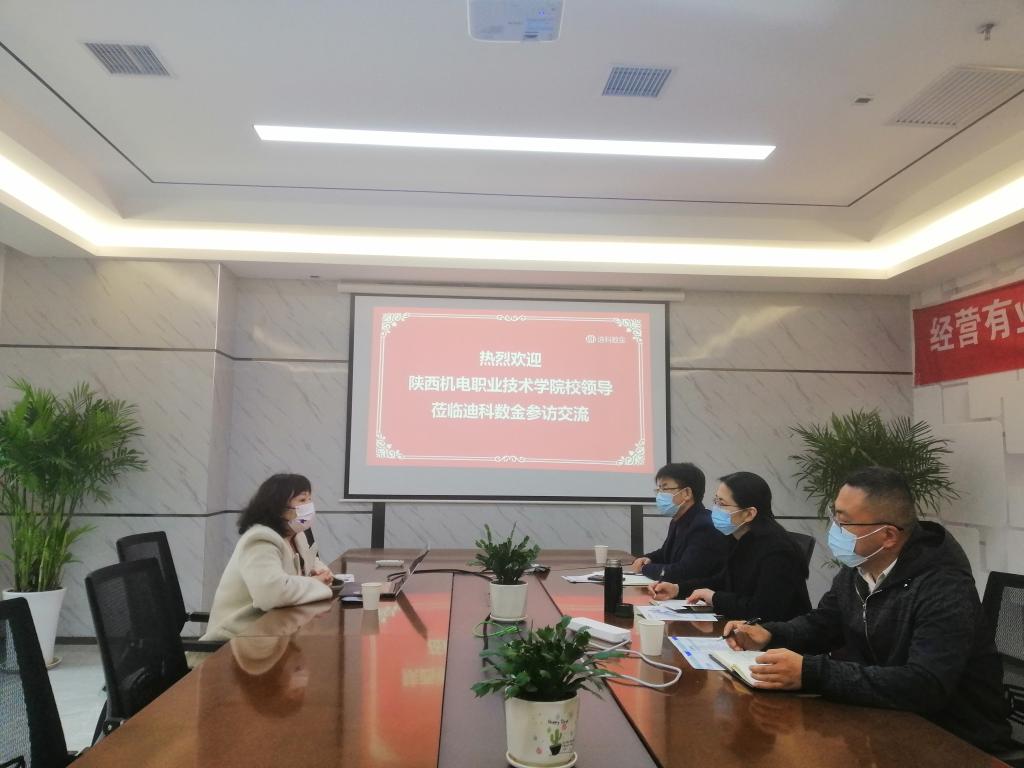 3月23日上午,在西咸新区沣西新城西部云谷创业园区西安迪科数金智能科技有限公司参观调研时,该公司人事经理潘冰华首先介绍了关于我们,并带领党委副书记张琴一行参观了西部云谷创业园、公司文化展厅、业务大厅、工作室、员工宿舍和餐厅等。在随后的座谈会上,该公司总经理田志卿对公司的用人需求、工作模式、薪资待遇、升职空间等进行了介绍,并表示积极参加公司毕业生招聘会,为其公司招聘人才;党委副书记张琴介绍了公司的基本办学、专业设置、人才培养等情况,希望公司能为公司大数据与会计、计算机等专业毕业生提供良好就业岗位,并表示愿为公司提供场地并与公司开展校企联合办学等深层次长期性合作。