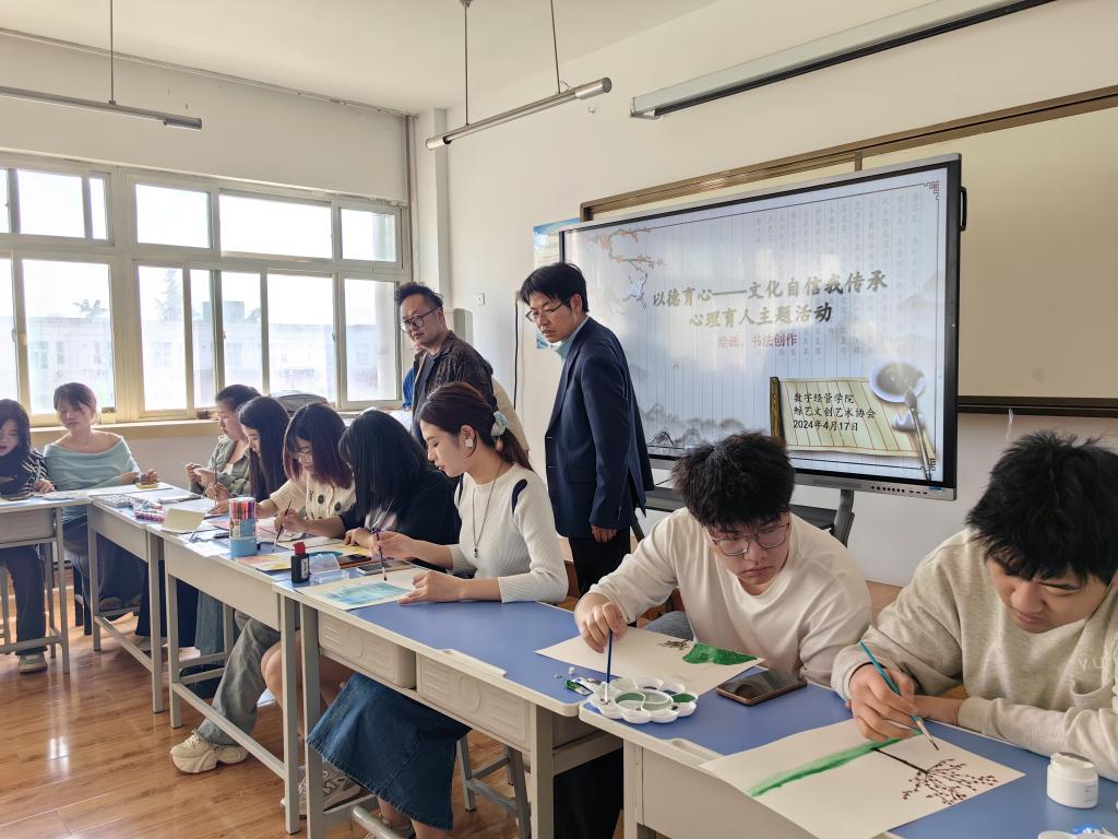 为切实推动公司员工心理健康发展,激发员工创作热情,舒缓员工心理压力,引导员工爱生活,展现阳光心态,用画笔记录春天的美好,展现青春姿态,4月17日下午公司联合鲸艺文创艺术协会开展“以德育心——文化自信我传承”之“定格青春”绘画创作活动,杜海军经理、绘画教师赵刚刚、鲸艺文创艺术协会指导教师董欢欢、专职辅导员老师何睦出席本次活动。
